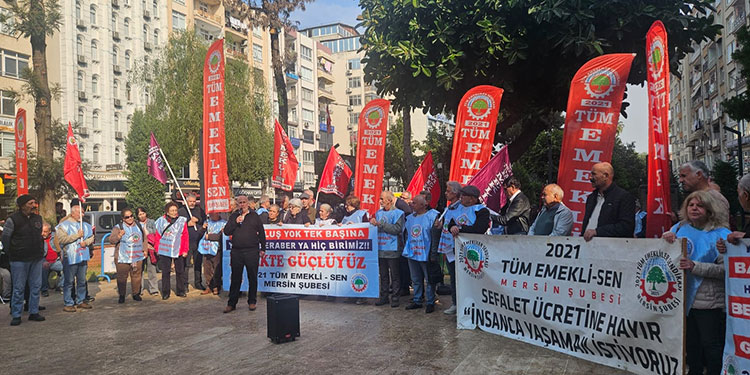 2021 Tüm Emekliler Sendikası Mersin Şubesi dün (26 Aralık 2025) Özgür Çocuk Parkı’nda basın açıklaması yaptı.