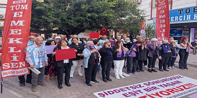 2021 Tüm Emekliler Sendikası Mersin Şube üyesi emekli kadınlar 25 Kasım Kadına Yönelik Şiddete Karşı Uluslararası Mücadele Günü’nde erkek şiddetine, kadın işsizliğine, kadın emeğinin iki kat sömürülmesine karşı, İstanbul Sözleşmesini yeniden kazanmak için alanlara çıktı.